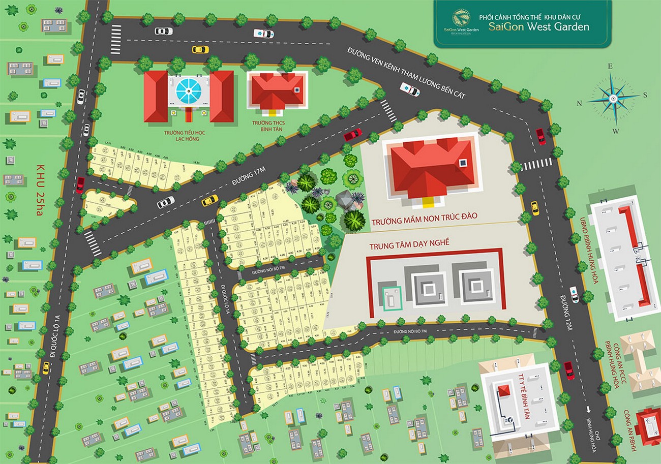 Tiện ích đất nền SaiGon West Garden hoàn hảo khi mang đến cho dân cư một cuộc sống xanh đúng nghĩa với công viên siêu rộng lớn, trở thành lá phổi xanh của cư dân nơi đây. Dân cư tại Saigon West Garden dễ dàng di chuyển đến công viên vào bất cứ thời điểm nào trong ngày khi đường được mở rộng đến 7m và đường lớn rộng 14m. Cùng với đó là gần UBND cùng trạm y tế sẽ mang đến cho cư dân sự an tâm khi có bất cứ vấn đề gì xảy ra.